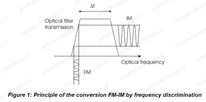 滤波器斜率引入的强度变化将频率调制变为强度调制FM-IM,可由光探测器转换成电信号。但前面提到的热不稳定性限制了这种方案的使用。然而,通常可用带宽为1nm的可调谐滤波器可用于此设置。
