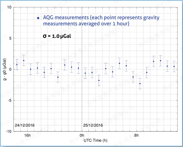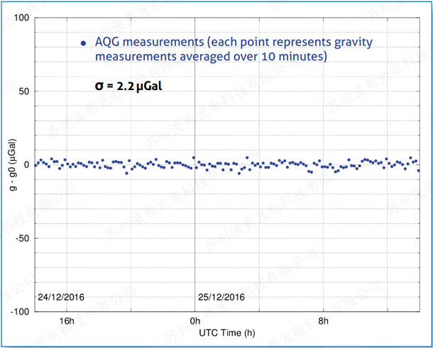 这个不间断的时间序列已经持续了一个月,并显示了当地的潮汐。当数据长期平均时持续时间,AQG 提供无漂移的亚 µGal 稳定性。