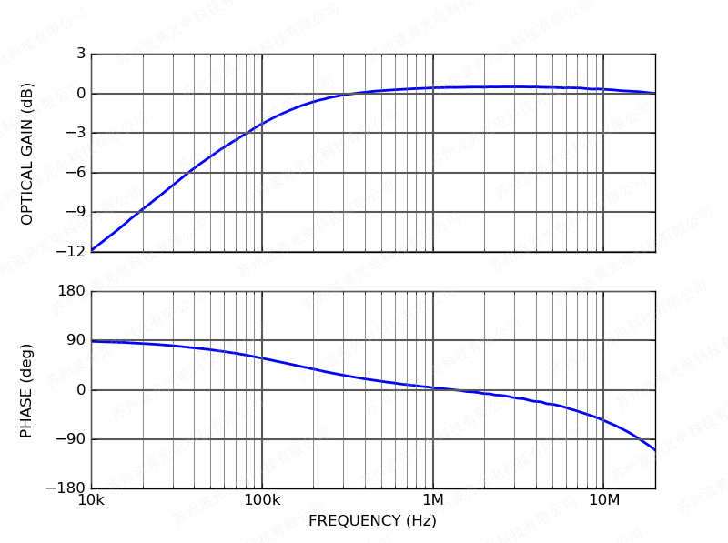 交流调制输入可用于调制100 kHz以上的激光,调制增益为20 mA/V: