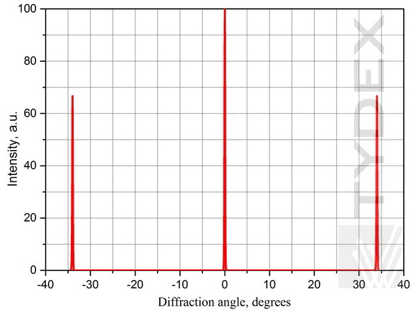 为了验证操作并比较计算参数和实际参数,在具有不同太赫兹辐射源的各种光学布置中测量了光栅的特性。使用了两个来源。第一个是 FIR 激光器,一种由可调谐 CO2 激光器(彼得大帝圣彼得堡理工大学)光学泵浦的亚毫米甲醇蒸汽激光器。第二个是 FEL,一种自由电子激光器(西伯利亚同步加速器和太赫兹辐射中心,Budker 核物理研究所,RAS)。图 3 和图 4 描绘了当 FIR 激光用作辐射源时,间距 d=250 μm 的 TPX 和 ZEONEX 光栅的单色波强度 (λ=118 μm) 与衍射角的关系。图 5 和 6 给出了由 FEL 照射的相同光栅的单色波强度 (λ=141 μm) 与衍射角的关系。在第二种情况下,会聚透镜放置在光栅和辐射传感器之间。这些图的比较表明,在第一种情况下,零阶最大值和一阶最大值比透镜排列更宽。这是由于会聚透镜聚焦平行光束。用户在根据自己的意图设计实验时必须考虑到这一点。当光栅用于研究辐射源的特性(功率、光束形状、能量分布等)时,透镜是多余的。但是当需要解析谱线时,镜头就变得很有必要了。