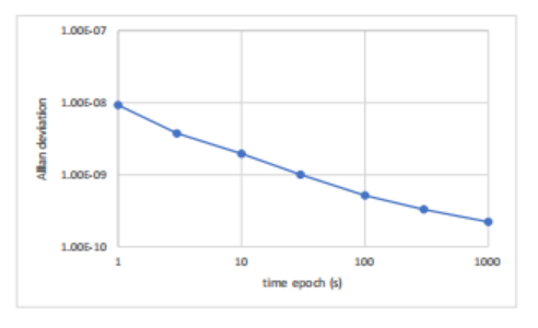 l 当τ=100秒时,Allan偏差小于1e-9。