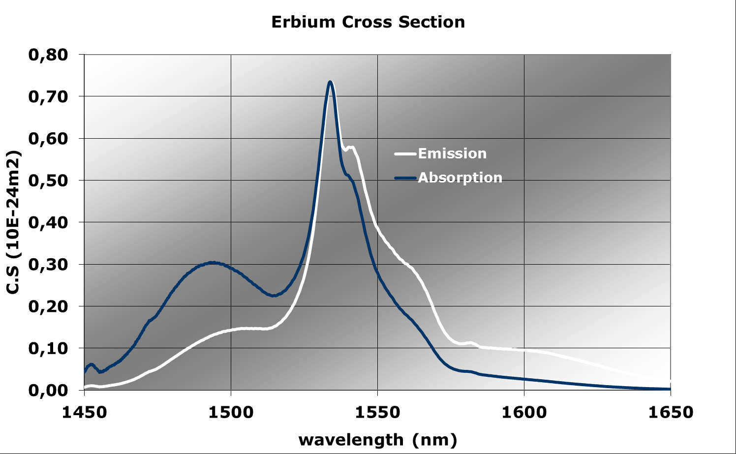Er吸收截面 @ 1536 nm (m²) 5,90E-25